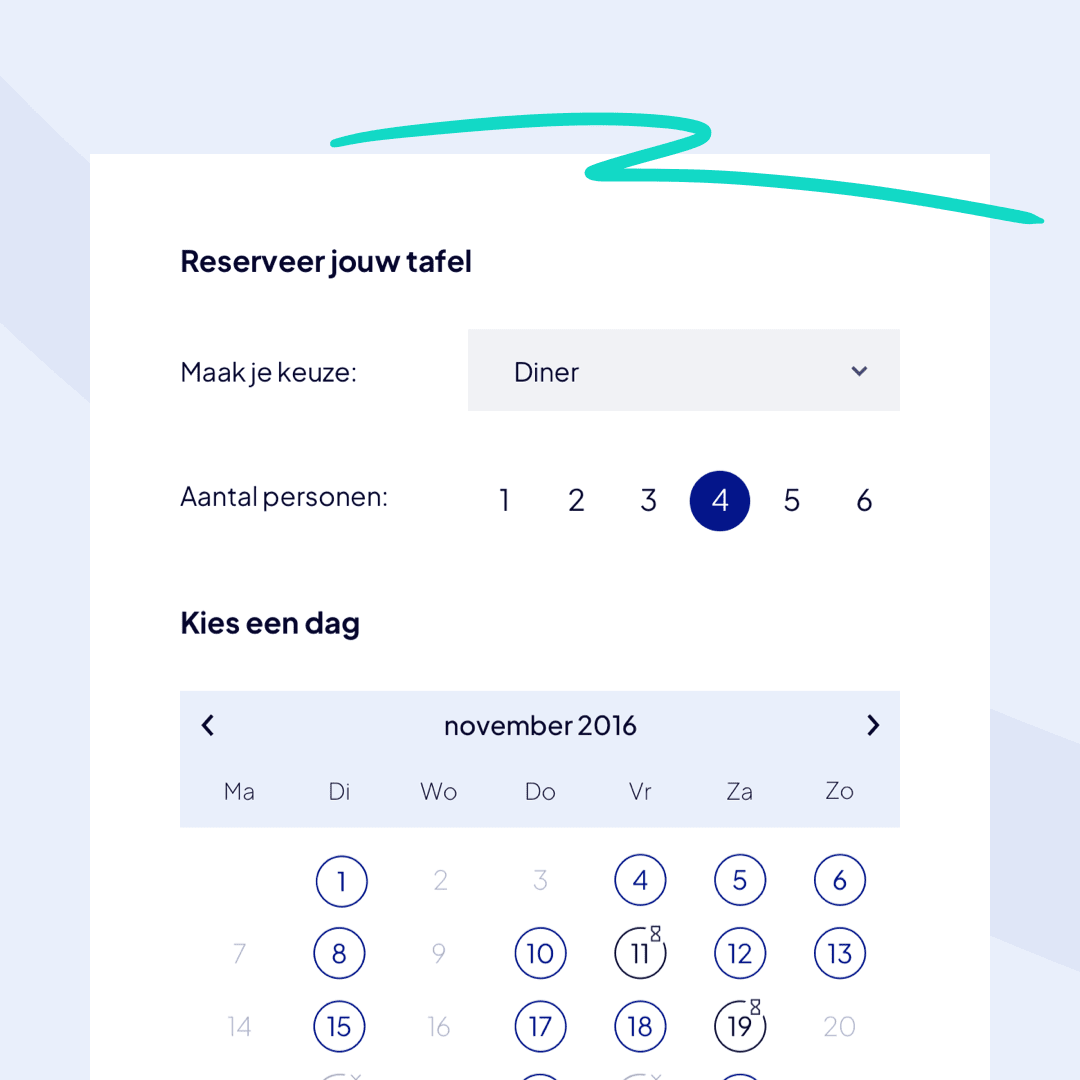 Met één klik kiezen gasten een datum en tijdstip. Jij bepaalt welke gegevens je nodig hebt en hoe je de reserveringen behandelt