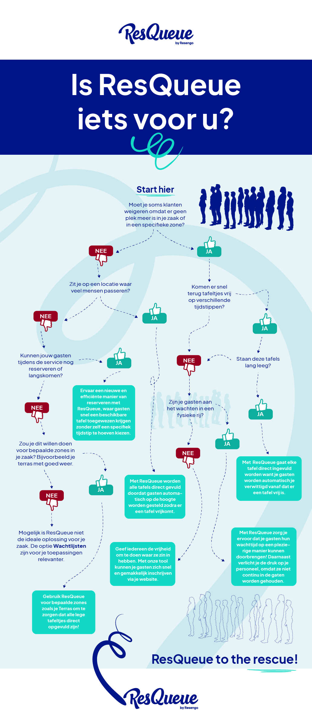 Wilt u weten of ResQueue de oplossing is voor uw wachtrijprobleem? Ontdek het in slechts één minuut met behulp van onze handige beslisboom. Beantwoord elke vraag in functie van uw eigen zaak.